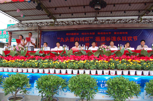 7月19日,畫眉谷景區(qū)內(nèi)彩旗飄揚(yáng),鑼鼓喧天,吶喊助威聲此起彼伏。由魯山縣旅游局主辦的“九頭崖白純杯”畫眉谷潑水狂歡節(jié)正式拉開帷幕。