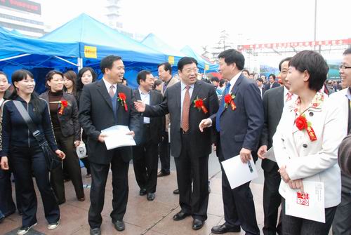 開幕式后,張廣智、李宏偉在市旅游部門負(fù)責(zé)人陪同下,視察了我市的旅游信息交易展位。