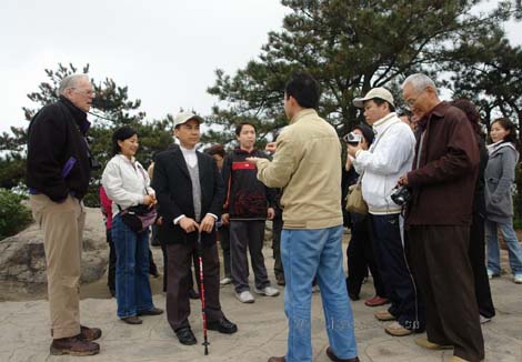 中美服務(wù)促進(jìn)會(huì)和香港信義會(huì)代表在報(bào)曉峰下聆聽(tīng)雞公山的故事