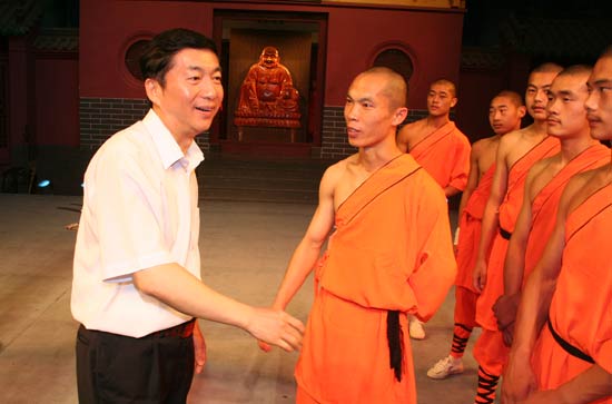 6月26日,由青海省委副書記駱惠寧率領的代表團在鄭州市常務副書記馬懿、登封市市長鄭福林等領導的陪同下蒞臨武術館,觀看功夫表演并合影留念。武術館副館長陳俊杰陪同觀看。