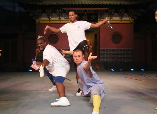 易建聯(lián)在新澤西網(wǎng)隊的隊友哈里斯延續(xù)今夏NBA球星掀起的訪問少林寺的熱潮。2009年8月26日下午,哈里斯來到武術館,觀看了專場功夫表演后,饒有興趣的與武術隊員較量切磋了一番!