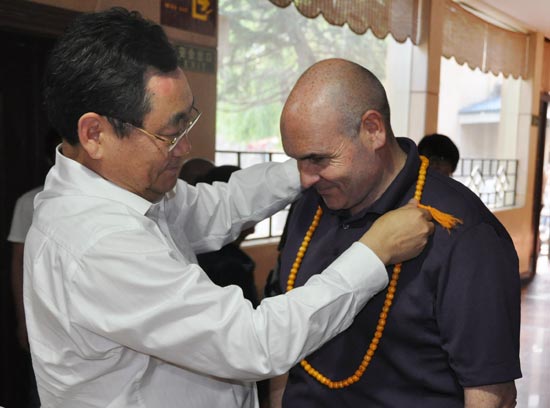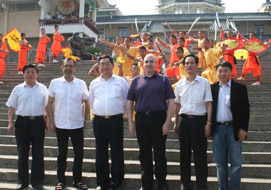 6月12日下午,多倫多市長候選人史振民(George Smithweman )在河南省旅游局局長蘇福功的陪同下蒞臨武術(shù)館參觀訪問。武術(shù)館舉行盛大的迎賓儀式迎接貴賓的到來,武術(shù)館館長焦紅波、書記郭新華陪同參觀。