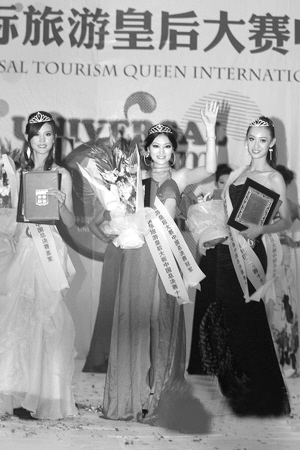 10月6日,“2010環(huán)球國(guó)際旅游皇后大賽中國(guó)區(qū)總決賽”在河南洛陽(yáng)落下帷幕。來(lái)自廣東、海南、山東、安徽、江西、山西、甘肅、河南等選區(qū)的26名精英選手,進(jìn)行了激烈比拼,最后,來(lái)自河南賽區(qū)南陽(yáng)郭璞模特藝術(shù)中心,身高177厘米,23歲的37號(hào)選手王玉珂奪得冠軍;由山東濟(jì)南賽區(qū)選送,現(xiàn)就讀于山東省工會(huì)管理干部學(xué)院,身高181厘米,20歲的63號(hào)選手辛銳獲得亞軍;由海南賽區(qū)選送,現(xiàn)就讀于廣東中山大學(xué),今年19歲的26號(hào)選手譚喬尹獲得季軍。
