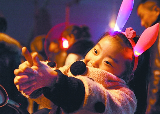 煙火晚會(huì)還未開(kāi)始,小姑娘抑制不住激動(dòng)的心情,做出可愛(ài)的動(dòng)作。