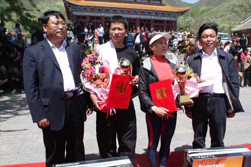 大賽在中午十二點左右進(jìn)入了尾聲,經(jīng)過工作人員的緊張統(tǒng)計,共決出男子組和女子組各一等獎一名,二等獎兩名,三等獎三名,優(yōu)秀獎30名。其中男子組第一名的桂冠由來自信陽師范學(xué)院的大二學(xué)生盛連春摘得,他僅用時29分02秒,他的驕人戰(zhàn)績令所有人都情不自禁為他鼓掌喝彩。女子組第一名則是頒給了一名48歲的婦女,來自遼寧的代爽,她僅用時40分45秒便跑完了全程,成為當(dāng)之無愧的女子組冠軍。在閉幕式上,幾位領(lǐng)導(dǎo)同志分別為獲獎選手頒發(fā)了證書和獎品,與他們一齊慶祝這振奮人心的時刻!