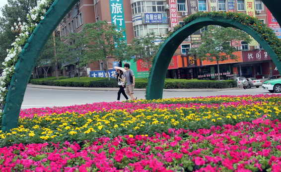 市區(qū)六峰路下環(huán)處花團(tuán)錦簇,車(chē)輛行駛有序。隨著第十七屆中國(guó)(三門(mén)峽)國(guó)際黃河旅游節(jié)的臨近,三門(mén)峽市全力投入到旅游節(jié)的籌備工作中,城市面貌煥然一新。