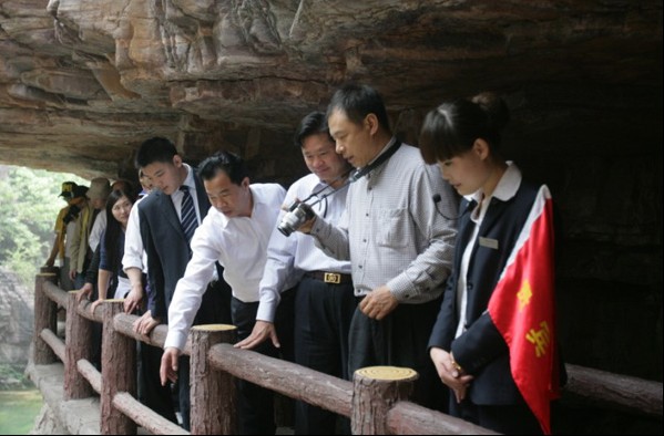5月11日,國家旅游局監(jiān)督管理司司長劉士軍、國家旅游局監(jiān)督管理司標準化處副處長劉莉莉蒞臨云臺山景區(qū)調(diào)研旅游標準化試點工作。焦作市市長助理、旅游局黨委書記魏豐收、河南省旅游局監(jiān)督管理處處長千利民、云臺山景區(qū)管理局局長韓躍平等領(lǐng)導(dǎo)陪同調(diào)研。