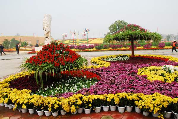 近年來,許昌市通過創(chuàng)建活動,獲得了多張國家級名片,建設(shè)了三國文化景區(qū)與廣場游園,成為國內(nèi)少有的生態(tài)與文化相互交融的宜居之城。今年花博會,市委、市政府加大了花卉組擺力度,構(gòu)思更加新穎,造型更加獨特,使許昌變成了一個眾人向往的大花園。市區(qū)連城大道、建安大道等主干道兩側(cè),許都公園、春秋廣場等大型游園入口均有造型各異的鮮花組擺,讓人眼前一亮,心情愉悅。近500萬盆鮮花打造的100多處大型花卉組景分布許昌和鄢陵境內(nèi),使市區(qū)呈現(xiàn)出城景相依的景觀效果。“國徽”、“黨旗飄飄”、孔雀開屏、母子象等花卉組擺營造出濃郁而又活潑的國慶氛圍,為美麗的蓮城錦上添花;同時,位于許昌東城區(qū)的一流設(shè)計的許昌博物館新館、許都公園、雙龍湖公園等處的開放的噴泉,引起了眾多市民和游客濃厚的興趣,公園、廣場游客絡(luò)繹不絕。
