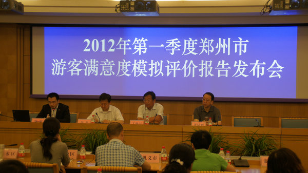 5月7日下午,在鄭州市市政府四樓會(huì)議室召開了全市2012年第一季度游客滿意度模擬評(píng)價(jià)報(bào)告發(fā)布會(huì)。省轄市市長(zhǎng)級(jí)干部丁世顯、鄭州市政府副秘書長(zhǎng)李杰、中國(guó)旅游研究院產(chǎn)業(yè)所陳旭博士、鄭州市旅發(fā)委辦公室主任鄭州市旅游局局長(zhǎng)龍同勝等出席會(huì)議。鄭州市政府李杰副秘書長(zhǎng)主持會(huì)議,參加會(huì)議的領(lǐng)導(dǎo)還有鄭州市旅發(fā)委各成員單位、十五個(gè)縣市區(qū)(開發(fā)區(qū))以及7個(gè)關(guān)鍵監(jiān)測(cè)點(diǎn)的負(fù)責(zé)同志。
