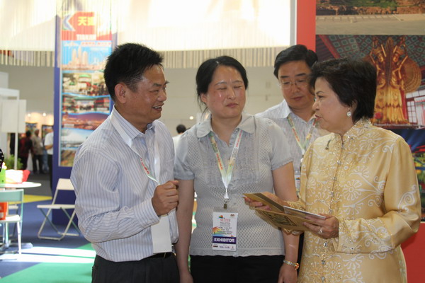 河南展廳重點推出了以少林寺為代表的中國世界遺產(chǎn)之旅、以黃帝拜祖為代表的華夏尋根之旅。開幕式結(jié)束后,馬來西亞旅游部長黃燕燕女士親自到河南展臺前,與團員親切交流,她講到了河南旅游資源豐富,尤其是少林寺在東南亞市場的知名度和影響力。