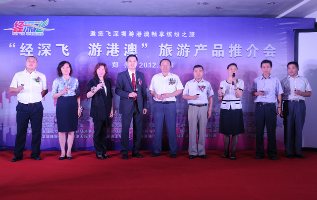 2012年7月24日下午,深圳市交運(yùn)委、深圳市文體旅游局牽頭組織深航、南航、迪斯尼樂(lè)園、海洋公園等二十多家單位在鄭州舉行 “經(jīng)深飛 游港澳”大型旅游推介會(huì)。鄭州市旅游局副局長(zhǎng)何宏波、深圳市文體旅游局及深圳市相關(guān)單位負(fù)責(zé)人出席了此次推介會(huì)。