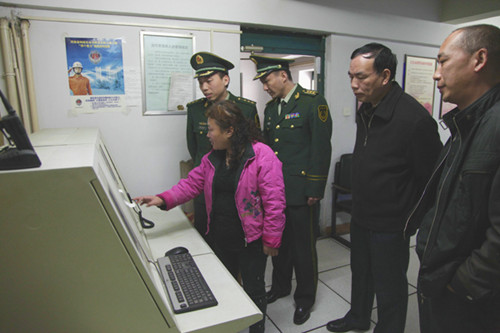 圖為三門(mén)峽市旅游局和三門(mén)峽市消防支隊(duì)對(duì)企業(yè)消防預(yù)警系統(tǒng)進(jìn)行檢查