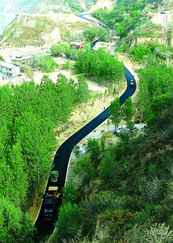 4月15日,在三門峽黃河公園,工人正在對環(huán)形自行車賽道路面鋪油。該賽道按照環(huán)形自行車賽道建設(shè)要求,全長10公里,預(yù)計本月20日道路修建完畢。建成后,可舉辦全國性、省級公路自行車賽及全民健身活動。今年黃河旅游節(jié)期間,“壯美黃河 魅力三門峽”第四屆全國山地自行車邀請賽將首次在這條賽道上舉行。