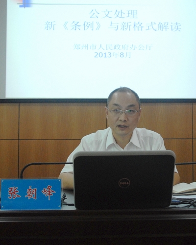 市政府辦公廳文電處張朝峰副處長作專題講座