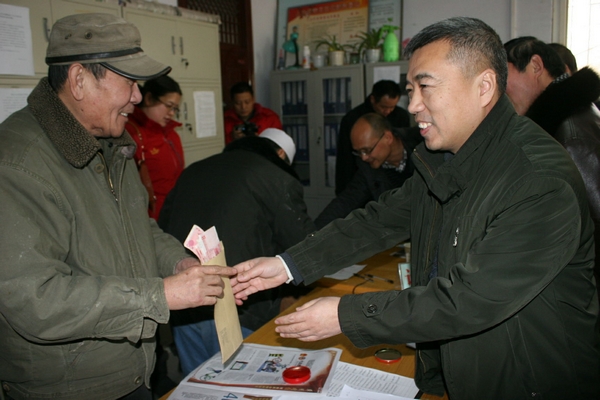 鄭州市旅游局副局長何宏波將救助金送到困難群眾手中