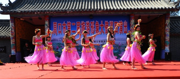3月15日,正值農(nóng)歷二月十五,廟會(huì)期間。淮陽(yáng)太昊陵景區(qū)剪枝公園內(nèi)人山人海,水泄不通。周口第二屆旅游形象大使巡回演出首站在淮陽(yáng)太昊陵景區(qū)火熱上演,拉開(kāi)了旅游形象大使在周口全市巡演的序幕。此次巡演不僅向來(lái)往于此的游客展示周口旅游文化的獨(dú)具魅力,同時(shí),也為游客提供了一次“視聽(tīng)盛宴”,倘若身臨其境即能一睹本土旅游形象代言人的風(fēng)采,還可以欣賞到精彩紛呈民俗表演。參加本次活動(dòng)的演員是經(jīng)過(guò)層層篩選而出的周口市第二屆旅游形象大使選撥賽前30名佳麗。她們略施粉黛,身穿著靚麗的服裝,并逐一登臺(tái)表演了舞蹈、歌曲、T臺(tái)秀等節(jié)目,精彩的演出贏得了觀眾雷鳴般的掌聲。“對(duì)周口歷史文化了解僅限于書(shū)本中,而此次參加這樣的活動(dòng)讓我身臨其境感悟頗深”。