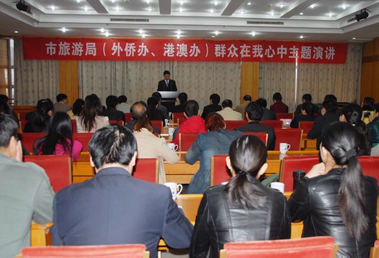 市旅游局舉辦此次演講活動(dòng),是希望全體干部能以此次黨的群眾路線(xiàn)教育實(shí)踐活動(dòng)為契機(jī),激發(fā)正能量,激活內(nèi)動(dòng)力,牢記“為民、務(wù)實(shí)、清廉,爭(zhēng)做一名優(yōu)秀黨員干部”為宗旨,明確“我是誰(shuí)、為了誰(shuí)、依靠誰(shuí)”的現(xiàn)實(shí)意義,真正做到實(shí)實(shí)在在為民辦好事、辦實(shí)事、辦成事,確保教育實(shí)踐活動(dòng)真正做到善始善終、善做善成。