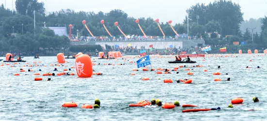 千人橫渡,萬人觀看,與母親河親密接觸。5月25日上午,2014中國(三門峽)橫渡母親河活動在天鵝湖國家城市濕地公園黃河水域成功舉辦,全國28個省(區(qū)、市)及中國香港、中國澳門79個城市105支代表隊(duì)2658人參加橫渡,創(chuàng)造了全國公開水域游泳的新紀(jì)錄。