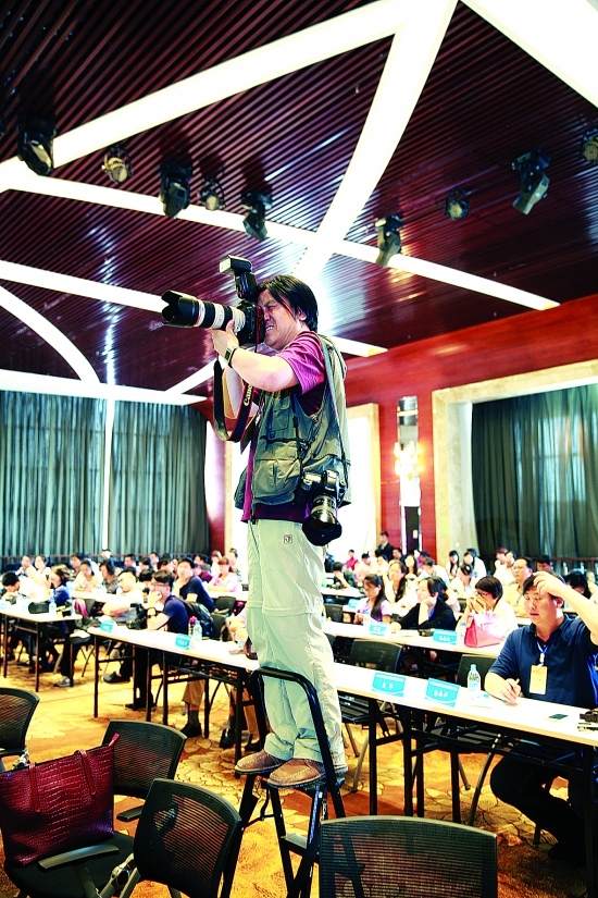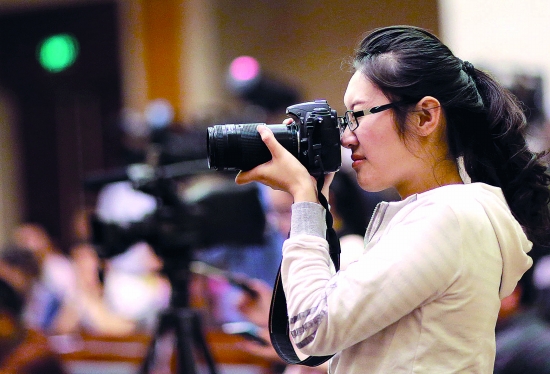 美女記者在報(bào)道節(jié)會(huì)活動(dòng)中毫不示弱