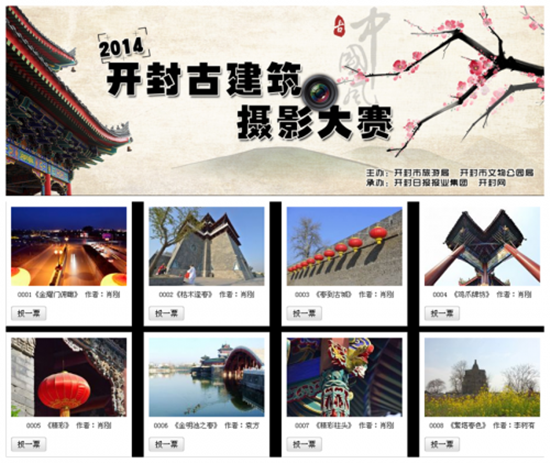 由開封市旅游局、開封市文物公園局、開封日報報業(yè)集團聯(lián)合主辦,開封網(wǎng)獨家承辦的“2014開封古建筑攝影大賽”,自啟動以來就受到廣大攝影愛好者的期待和追捧,投稿郵箱每天都會收到數(shù)十幅參賽者發(fā)來的攝影作品,攝影愛好者們用手中的相機,從不同的角度定格古跡神韻、民俗風(fēng)情,在錯落有致的古建筑間和豐富多彩的人文展演中進行一次次光影巡禮,淋漓盡致的展現(xiàn)了古城開封文化的獨特魅力。