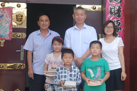 鄭州市旅游局群眾工作隊(duì)員與村干部一起上門為留守兒童送書