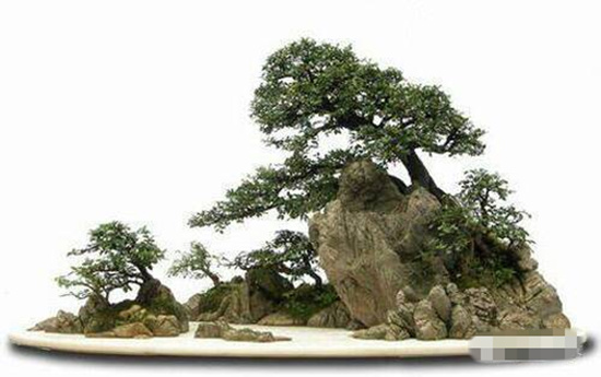 海派盆景主要藝術(shù)特色雄健自然,蒼古入畫。成型的盆景枝干屈伸自如,線條明快流暢,渾厚蒼勁,神采飛揚。常用樹種有五針?biāo)、羅漢松、錦松、金錢松、真柏、榆、雀梅、三角楓等。此外,還常見迎春、火棘、紫藤、六月雪、石榴、胡頹子等觀花、觀果樹種。