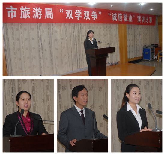為深入開展黨的群眾路線教育實踐活動,扎實推進創(chuàng)建全國文明城市工作,切實增強黨員干部職工踐行核心價值的積極性、自覺性,學(xué)習(xí)焦裕祿爭做為民務(wù)實清廉的表率,學(xué)習(xí)楊水才爭做黨和人民的好干部,廣泛營造誠實守信、愛崗敬業(yè)、樂于奉獻、比學(xué)趕幫的濃厚氛圍,促使大家把學(xué)習(xí)的收獲轉(zhuǎn)化為工作的動力,繼續(xù)解放思想,開拓創(chuàng)新,以飽滿的工作熱情和優(yōu)異的工作業(yè)績,推動許昌旅游工作又好又快發(fā)展。由許昌市旅游局舉辦的“雙學(xué)雙爭”“誠信敬業(yè)”演講比賽于9月18日上午在市委會議室舉行。