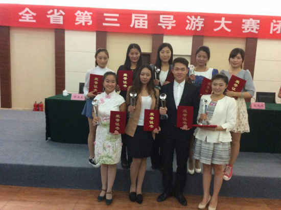 2014年9月18日至9月19日在鄭州舉行了全省第三屆導(dǎo)游員講解員服務(wù)技能大賽,這次大賽由河南省旅游局、河南省精神文明建設(shè)辦公室和河南省財貿(mào)工會聯(lián)合舉辦,全省18個地市和直轄縣派出了25支代表隊97名佼佼者參加了中文導(dǎo)游組、英文導(dǎo)游組和中文講解員組三個工種的比賽。其中中文導(dǎo)游員35名,英文導(dǎo)游19名,中文講解員43名。開封市派出了9名選手,其中3名中文導(dǎo)游,1名英文導(dǎo)游,5名中文講解員參賽,經(jīng)過情景再現(xiàn)、講解環(huán)節(jié)、知識問答和才藝展示等環(huán)節(jié)的激烈競爭,囊括了三個組別全部一等獎,其中兩個第一名,開封市清明上河園的別婷婷取得中文導(dǎo)游員的第一名,并榮獲省五一勞動獎?wù);開封大學(xué)旅游管理學(xué)院的李慧代表開封市導(dǎo)服中心取得英文導(dǎo)游組的第一名,并榮獲省五一勞動獎?wù)拢缓哟罅_洋代表鐵塔管理處取得中文講解組的第二名,一等獎。另外河大劉紫檀代表萬歲山管理處和清明上河園的于帥分別獲得中文講解組的第五名和第七名,榮獲二等獎和三等獎;河大董芳萍代表開封市導(dǎo)服中心獲得中文導(dǎo)游組的第七名,榮獲三等獎;其他選手均獲得優(yōu)秀獎,這是開封市代表隊取得的歷史最好成績。開封市旅游局榮獲最佳組織獎。