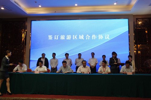 信陽市政府辦公室副主任王家軍和市旅游局局長童光亮應邀參加年會。王家軍主任代表中共信陽市委、信陽市人民政府圍繞“智慧旅游、深化合作”主題做了題為《智慧旅游引領旅游產(chǎn)業(yè)轉型升級》的主題發(fā)言,童光亮局長代表信陽市旅游局與孝感、隨州、黃岡、六安、安慶等五市旅游局簽訂了《大別山旅游區(qū)域合作協(xié)議》。