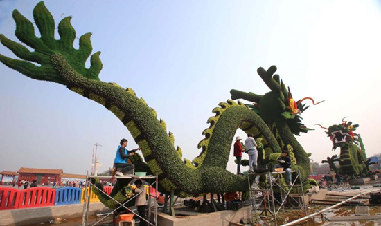 菊花文化節(jié)臨近,開封市公園景點、大街干線、廣場綠地,工人們加緊布置各種菊花花卉造型景觀,準備迎接菊花文化節(jié)的到來。