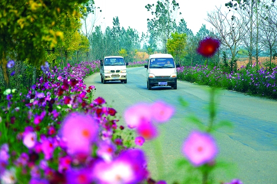 截至目前,全市干線公路總計種植花草130公里,成活率90%以上,實現(xiàn)了花草搭配、喬灌結(jié)合、美化公路的目標(biāo)。圖為省道247線種植的波斯菊成為一道亮麗的風(fēng)景線。