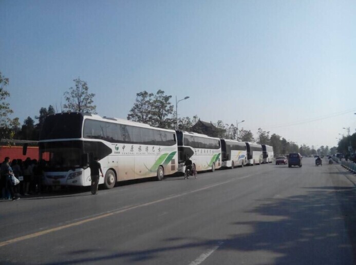 圖1:五輛大巴整齊?吭谔涣昃皡^(qū)