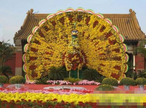 此外,在火車站、大梁門、午朝門廣場(chǎng)、金明廣場(chǎng)等28個(gè)重要地段以及開元名都、河南大學(xué)等20個(gè)道路沿線的主要單位和御河兩側(cè),還有55萬(wàn)盆菊花裝點(diǎn)市區(qū)街景。在午朝門廣場(chǎng)、火車站廣場(chǎng),威武高大的菊龍仿佛昂首騰躍在祥云之上,四周繁花錦簇,蔚為大觀;在朱雀苑廣場(chǎng)方形舞臺(tái)上,由五色草做成的盤鼓,配以各色菊花花帶,烘托出熱烈喜慶的氣氛。這些菊花造型不僅突出本次菊花文化節(jié)的主題,展示開封人民熱情好客的良好形象,更營(yíng)造出菊香滿城、喜慶祥和的節(jié)會(huì)氛圍。
