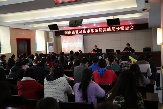 受信陽(yáng)農(nóng)林學(xué)院邀請(qǐng),3月24日,駐馬店市旅游局黨組書記、局長(zhǎng)高峰前往信陽(yáng)農(nóng)林學(xué)院考察交流學(xué)習(xí),與旅游管理系教師職工進(jìn)行座談交流,并給旅游管理系師生做了“旅游局長(zhǎng)侃旅游”的專題報(bào)告。信陽(yáng)農(nóng)林學(xué)院黨委副書記、院長(zhǎng)郭長(zhǎng)華,黨委副書記劉光生,副院長(zhǎng)尹新明、趙一鵬、王慶兵以及旅游管理系等相關(guān)領(lǐng)導(dǎo)及有關(guān)同志參加座談并聽(tīng)取報(bào)告。