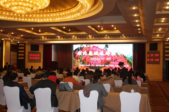2015年4月8日上午,湖北麻城市“人間四月天,麻城看杜鵑”旅游推介會在黃河飯店隆重舉行。鄭州市旅游局副局長何宏波、胡家安,麻城市委常委、宣傳部長邱勝平,麻城市人大副主任楊金葉,麻城市旅游局黨委書記洪俊波,麻城市旅游局局長段晶出席了推介會。我市50多家旅行社、10多家新聞媒體參加推介會。