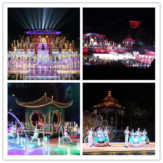 演出達(dá)到高潮部分的時(shí)候,舞臺(tái)將向水面打開,立體式的舞臺(tái)和觀眾座椅可結(jié)合劇情升降、移動(dòng)、傾斜、錯(cuò)落等相應(yīng)變化,并設(shè)置噴霧和散花裝置,還將在演出中制造出水霧、瀑布、河流等場(chǎng)景,充分利用音樂、特效、激光等高科技手段與表演相結(jié)合,打造出一場(chǎng)豪華的視覺盛宴。