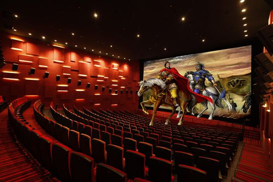 園區(qū)內(nèi)有電影院線、電影超市、5D影院、7D影院、IM定制式影院等,電影院將視覺、聽覺、嗅覺、觸覺和動(dòng)感完美地融為一體,觀眾在觀看電影時(shí),不僅可以“觸摸”到電影中的物體,還能“遇到”刮風(fēng)、下雨、雷電等場(chǎng)景,讓人身臨其境,妙趣橫生。