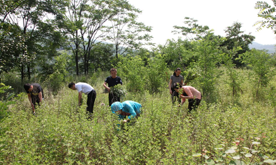 干部職工手持鐮刀收割艾草