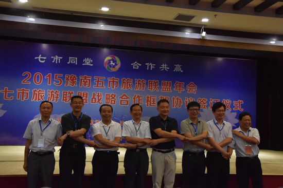 為進一步深化豫南五市區(qū)域旅游合作,實現(xiàn)優(yōu)勢互補,資源共享、客源互送、市場互推、互惠共贏,2015年豫南五市旅游聯(lián)盟年會暨豫南七市旅游聯(lián)盟戰(zhàn)略合作框架協(xié)議簽訂儀式于2015年7月11日下午在羲皇故都、水城淮陽舉辦。許昌市旅游局陳志遠局長和李偉杰副局長出席此次會議并參加簽約儀式。