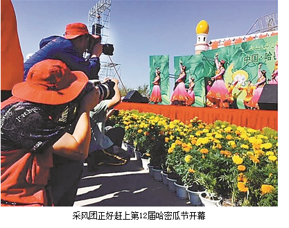 哈密是我省的對(duì)口援建城市,洛陽多年來也投入大量資金、技術(shù)、人才等資源援建哈密。采風(fēng)團(tuán)到達(dá)哈密時(shí),正好趕上第12屆哈密瓜節(jié)開幕,應(yīng)邀出席開幕式,用手中的相機(jī)記錄了這屆哈密瓜節(jié)盛況。在采風(fēng)中,攝影師們還帶著從洛陽帶來的牡丹真花進(jìn)行“國(guó)花牡丹影像調(diào)查”,維吾爾族、哈薩克族、蒙古族、回族等少數(shù)民族同胞接受了調(diào)查,并與牡丹合影。他們紛紛表示,洛陽牡丹非常漂亮,有機(jī)會(huì)一定要到洛陽看看牡丹。攝影師們攜帶的洛陽牡丹真花全部通過特殊技術(shù)保存著盛開狀態(tài)。在哈密瓜節(jié)現(xiàn)場(chǎng)、烏魯木齊國(guó)際大巴扎、吐魯番葡萄溝、天山天池、敦煌莫高窟……多彩的牡丹都吸引了絲路沿線各城市市民、游客的圍觀、合影。