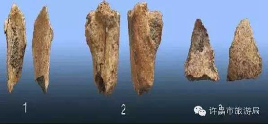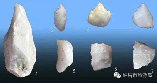 該遺址已出土數(shù)以萬計的石器和哺乳動物化石。遺址性質(zhì)(第11層)為古人類在泉水邊屠宰動物、制作(使用)石器或其他工具的生活與工作營地。就地層而言,以第11層和第5層收獲最大。第 11層現(xiàn)已發(fā)現(xiàn)1、2號兩顆許昌人頭骨化石、肢骨化石以及所屬9個古人類個體、大量石器和哺乳動物化石,距今10萬年左右。