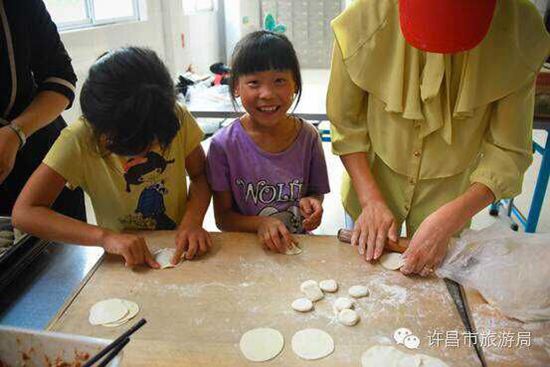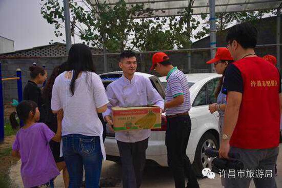 許昌迎賓館的旅游志愿者們給小朋友們帶來水果,還特意準(zhǔn)備了肉餡給小朋友們包餃子過中秋節(jié)。