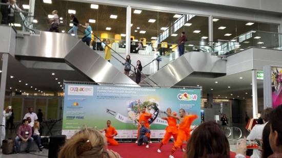 武術(shù)隊員在俄羅斯表演少林功夫