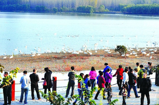 11月1日,三門峽天鵝湖國家城市濕地公園游人如織,人們紛紛來這里看望三門峽人的老朋友——白天鵝。據(jù)悉,當(dāng)天天鵝湖有白天鵝1200余只,迎接游客1萬人次以上,迎來今年第一個觀賞白天鵝的高潮。