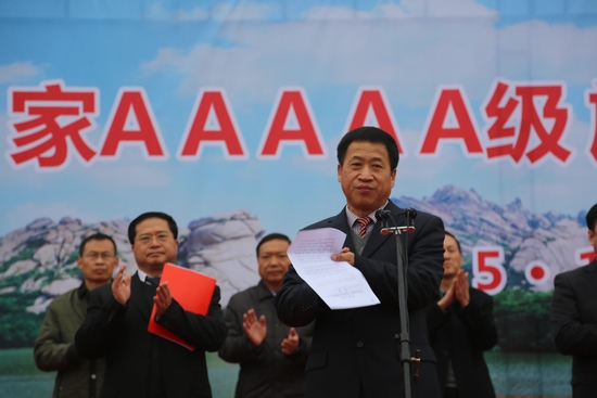 揭牌儀式上,中共駐馬店市委副書記、市長陳星,省旅游局副局長張鳳有與嵖岈山旅游集團(tuán)董事長宋富錦、遂平友利實(shí)業(yè)集團(tuán)公司董事長魏友等一起興致勃勃地為嵖岈山國家5A級旅游景區(qū)揭牌。省旅游局副局長張鳳有宣讀了《全國旅游資源規(guī)劃開發(fā)質(zhì)量評定委員會(huì)公告》;中共駐馬店市委副書記張憲中致辭;市政府副市長李國勝主持揭牌儀式。