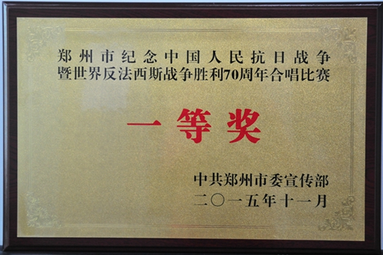 鄭州市旅游局獲得全市紀(jì)念抗戰(zhàn)勝利70周年合唱比賽一等獎(jiǎng)