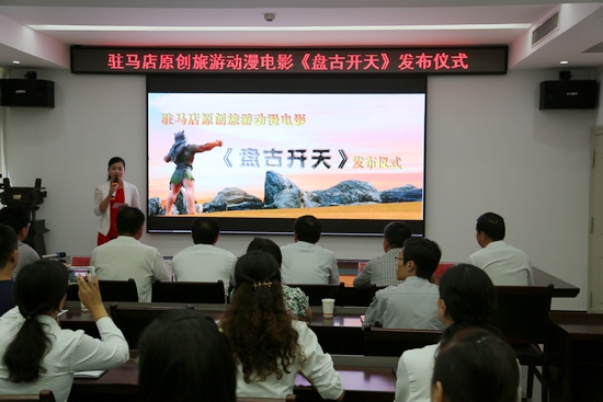 為了叫響駐馬店“中國傳奇之都”品牌,2015年,駐馬店市旅游局依托該市“中國重陽文化之鄉(xiāng)”、“中國梁祝之鄉(xiāng)”、“中國車輿文化之鄉(xiāng)”、“中國冶鐵文化之鄉(xiāng)”、“中國女媧文化之鄉(xiāng)” “中國嫘祖文化之鄉(xiāng)”和“中國盤古圣地”等傳奇文化資源優(yōu)勢,創(chuàng)新文化旅游產(chǎn)業(yè)表現(xiàn)和宣傳形式,該市旅游局與黃淮學(xué)院動漫學(xué)院、駐馬店市小卒動漫科技有限公司聯(lián)合制作創(chuàng)作了全國首部原創(chuàng)文化旅游3D動漫電影《盤古開天》,并于2015年9月9日正式對外發(fā)布;該動漫在河南省首屆網(wǎng)絡(luò)作品“七個一工程”評選中獲獎。今年5月份在深圳文博會和10月份中原(鶴壁)文化產(chǎn)業(yè)博覽交易會上,成為了該市重點對外宣傳推介的文化旅游產(chǎn)品,引起了各方關(guān)注和一致好評;同時,該劇還入圍由國家互聯(lián)網(wǎng)信息辦公室主導(dǎo)的“2015年度‘百部網(wǎng)絡(luò)正能量動漫音視頻’作品征集活動”,在央視網(wǎng)展播評獎。