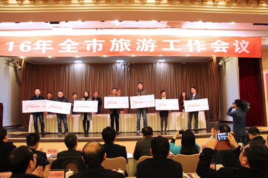 會(huì)議傳達(dá)學(xué)習(xí)了全國、全省旅游工作會(huì)議精神,市委吳天君書記、省旅游局寇武江局長重要批示精神。對2015年度全市旅游系統(tǒng)先進(jìn)集體和個(gè)人,全市旅游工作先進(jìn)單位,分別在文明旅游、旅游信息化、旅游廁所建設(shè)與管理、旅游行政執(zhí)法等方面工作先進(jìn)的16家單位和在全市政務(wù)接待講解工作中表現(xiàn)優(yōu)秀的20名導(dǎo)游員進(jìn)行了通報(bào)表彰,對成功創(chuàng)建3A級景區(qū)的兩家景區(qū)、2015年度游客接待量排名靠前的5家旅行社進(jìn)行了表彰獎(jiǎng)勵(lì)。