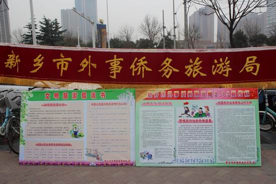 在活動(dòng)現(xiàn)場,新鄉(xiāng)市外事僑務(wù)旅游局設(shè)置活動(dòng)展臺(tái)向廣大市民發(fā)放《文明旅游 理性消費(fèi)—品質(zhì)旅游出行提示》、新鄉(xiāng)市旅游地圖、旅游年宣傳活動(dòng)手冊(cè)等文明旅游、安全旅游、理性維權(quán)等宣傳資料8000余份,F(xiàn)場還解答咨詢、受理投訴,給市民認(rèn)真講解旅游安全、依法維權(quán)、理性消費(fèi)、旅游投訴等相關(guān)知識(shí),與市民進(jìn)行零距離交流,傾聽市民的意見建議,使廣大市民進(jìn)一步了解《旅游法》等相關(guān)法律法規(guī),有效地引導(dǎo)游客增強(qiáng)文明旅游意識(shí),樹立正確的旅游觀念。