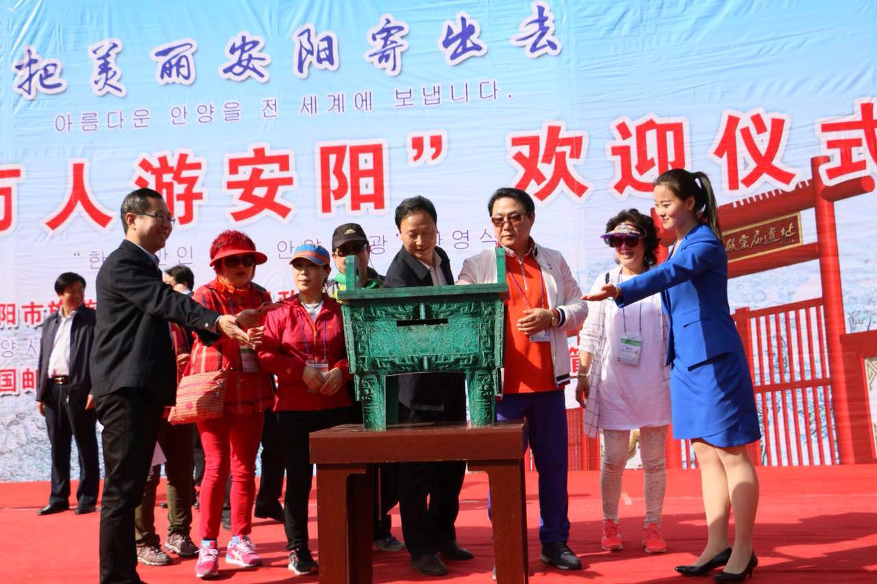 活動啟動儀式上,市領(lǐng)導(dǎo)向2016年來安旅游的第三萬名韓國游客鄭海元先生贈送了紀(jì)念品,同時為其他游客代表頒發(fā)了安陽元素的甲骨文書法作品。甲骨文字模特秀、中國武術(shù)等精彩的旅游表演向韓國游客展示了安陽的殷商、周易等歷史文化,受到了韓國游客陣陣掌聲。同時,安陽“旅游+郵政”再度聯(lián)手,向到場游客發(fā)放“把美麗安陽寄出去”的韓版明信片,邀請游客們當(dāng)場寫下祝福,通過現(xiàn)場的司母戊主題郵筒,將美麗安陽和美好的祝福寄回家鄉(xiāng),寄向全世界,邀請更多的國際友人來安陽旅游觀光。